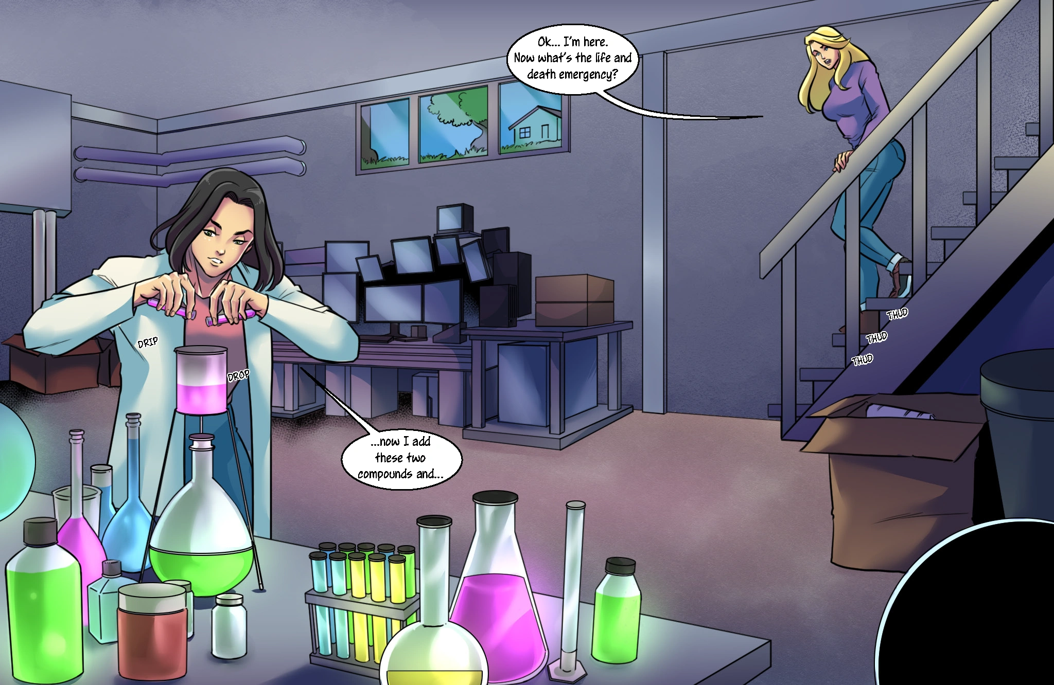 One drop of the mysterious formula is all it takes to send her life into overdrive and shatter the limits of human potential. One Drop's got a seriously addictive premise - this is an explosive female muscle growth comic that dives deep into one woman's desperate pursuit of sudden power, extreme muscle expansion, and complete transformation. When a super smart scientist perfects that secret formula, the results are nothing short of explosive and a little bit unbelievable. A single drop is literally all it takes to unlock an unimaginable amount of strength.