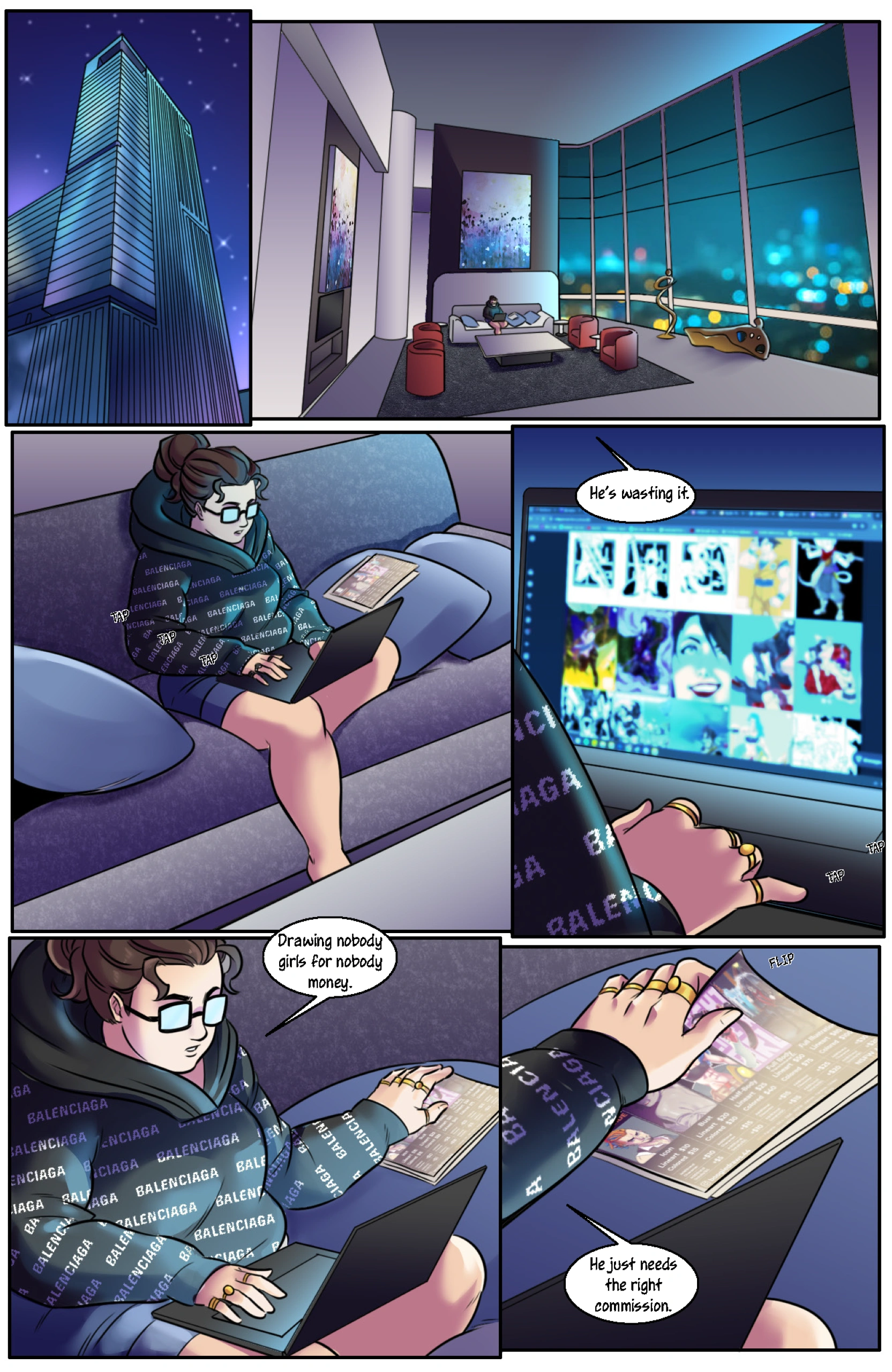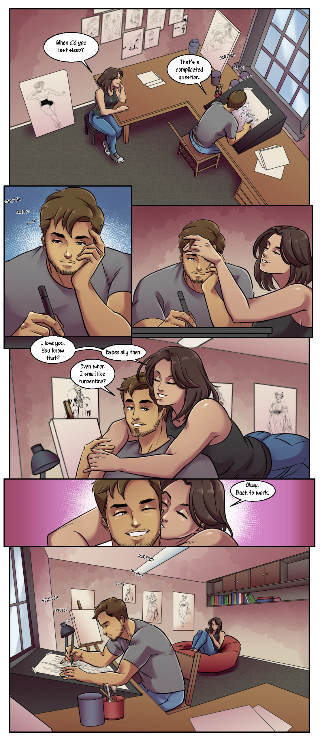 Daniel Ruiz is a talented artist scraping by on small commissions in a cramped studio apartment. He draws beautiful women for a living, but barely remembers to eat. His girlfriend keeps him grounded, bringing him food and reminding him he's human.